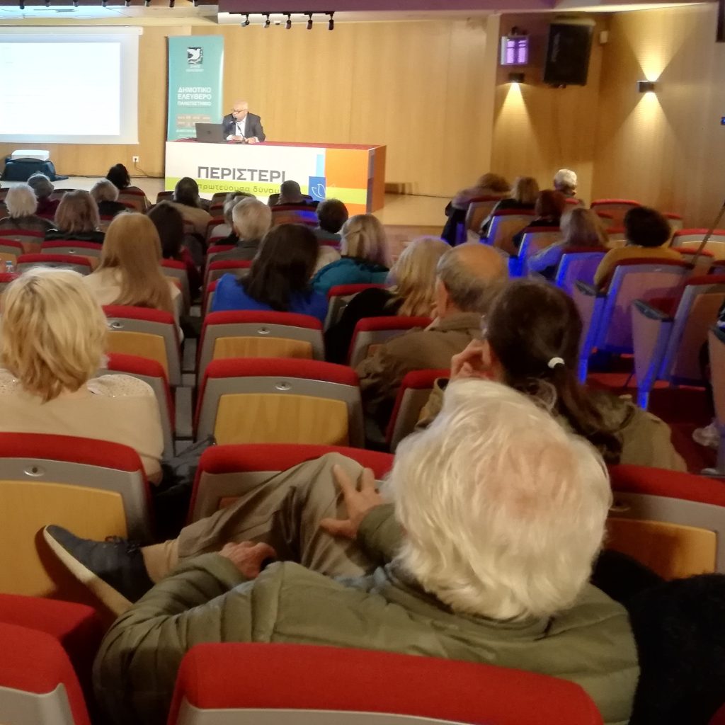 Με ιδιαίτερο ενδιαφέρον πραγματοποιήθηκε τη Δευτέρα 30 Μαρτίου 2026, στο Πολιτιστικό – Συνεδριακό Κέντρο του Δημαρχιακού Μεγάρου Περιστερίου, η διάλεξη με θέμα: «Παχυσαρκία: Παράγοντες κινδύνου, επιπλοκές και στρατηγικές για βιώσιμη μακροπρόθεσμη διαχείριση βάρους», στο πλαίσιο των δράσεων του Δημοτικού Ελεύθερου Ανοικτού Πανεπιστημίου (Δ.Ε.Α.Π.) Περιστερίου.